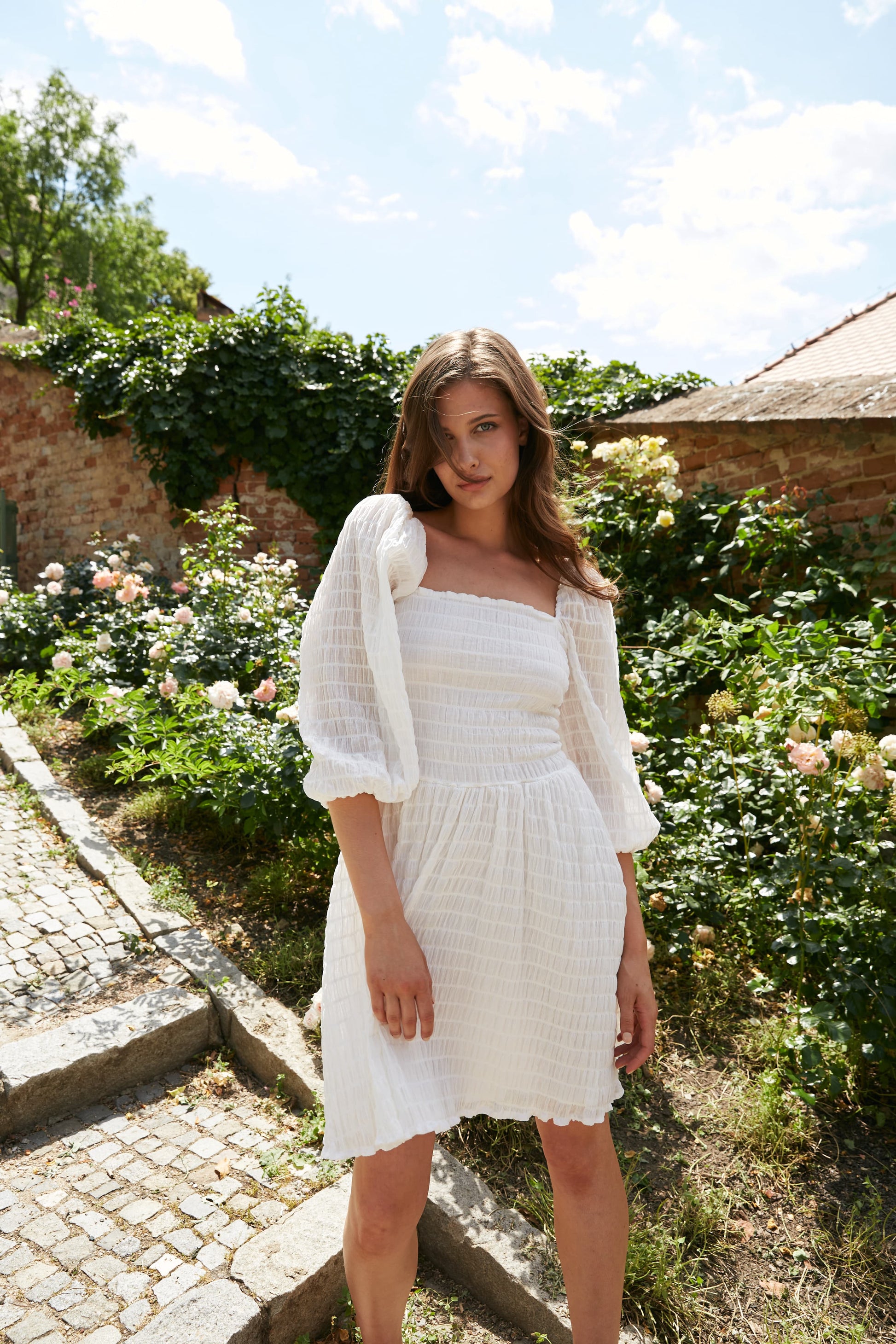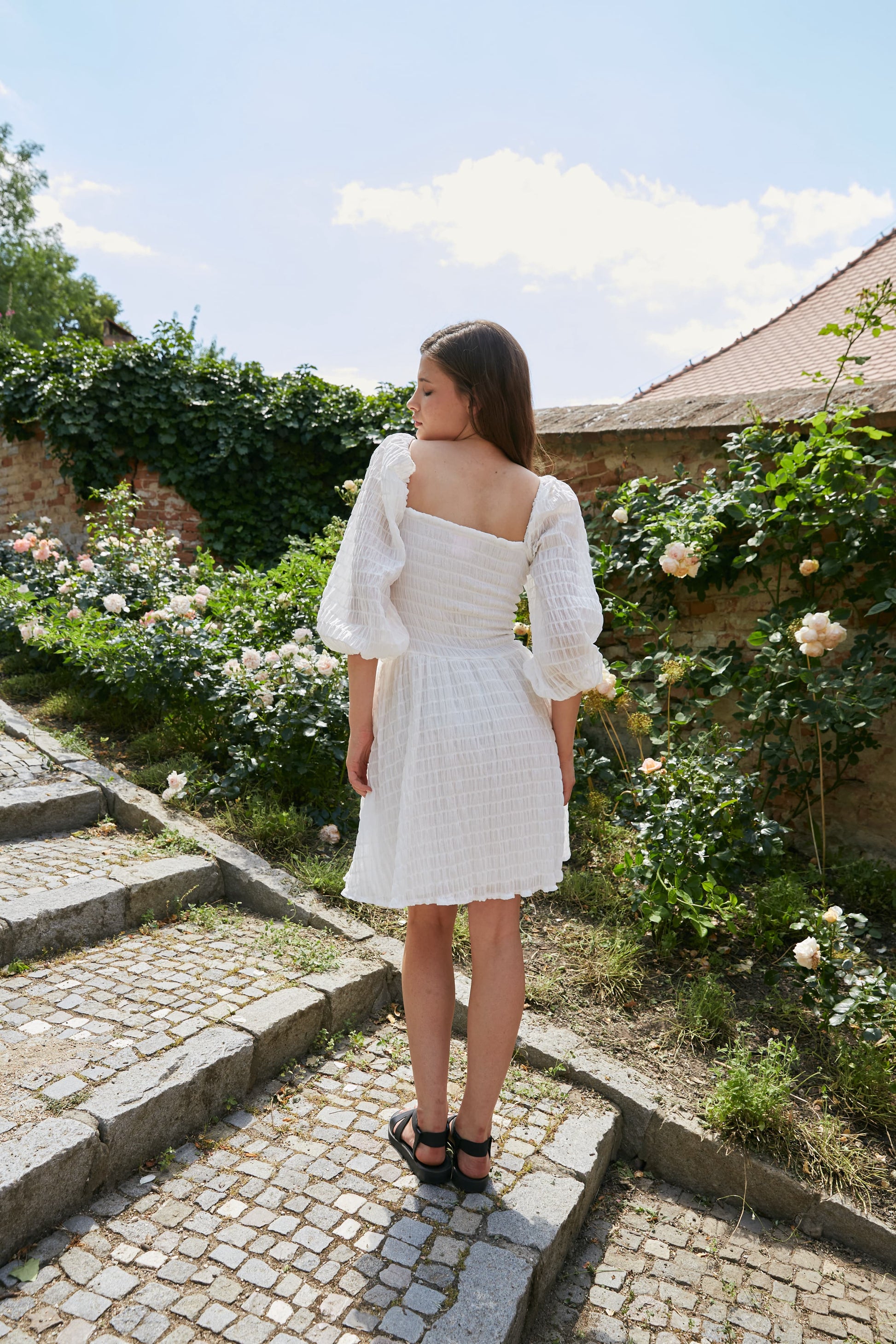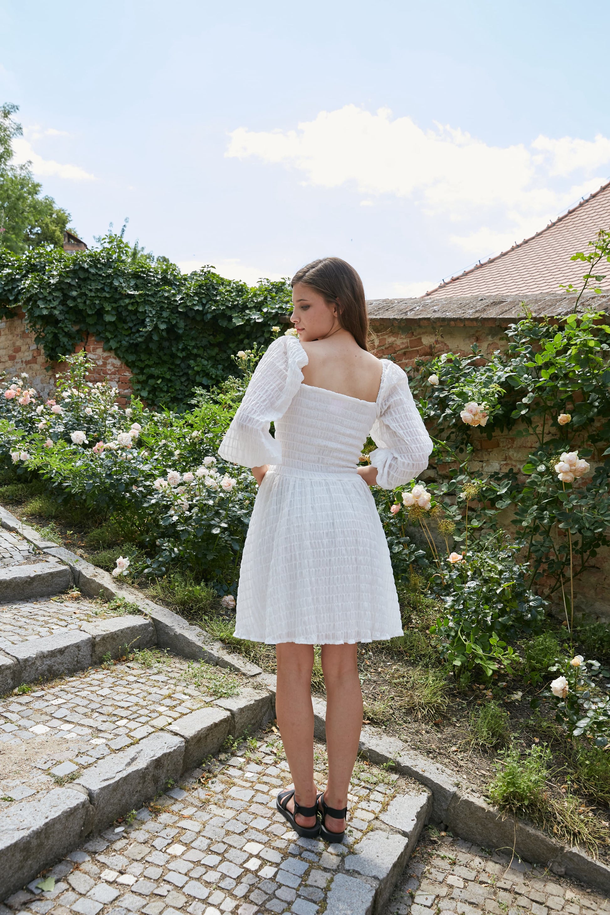 Šaty z bavlněného voálu se žabičkováním jsou z exkluzivního materiálu, který jsem si přivezla z Bali v omezeném množství a nikde jinde jej nekoupíte. Jsou elastiské a přizpůsobí se postavě. Přes prsa je dvojitá vrstva látky, takže je můžete nosit i bez podprsenky, ale pro pohodlí lze zvolit i bílou podpsenku, nejlépe bez ramínek. Spodní část je z dvojité vrstvy a není průsvitná.