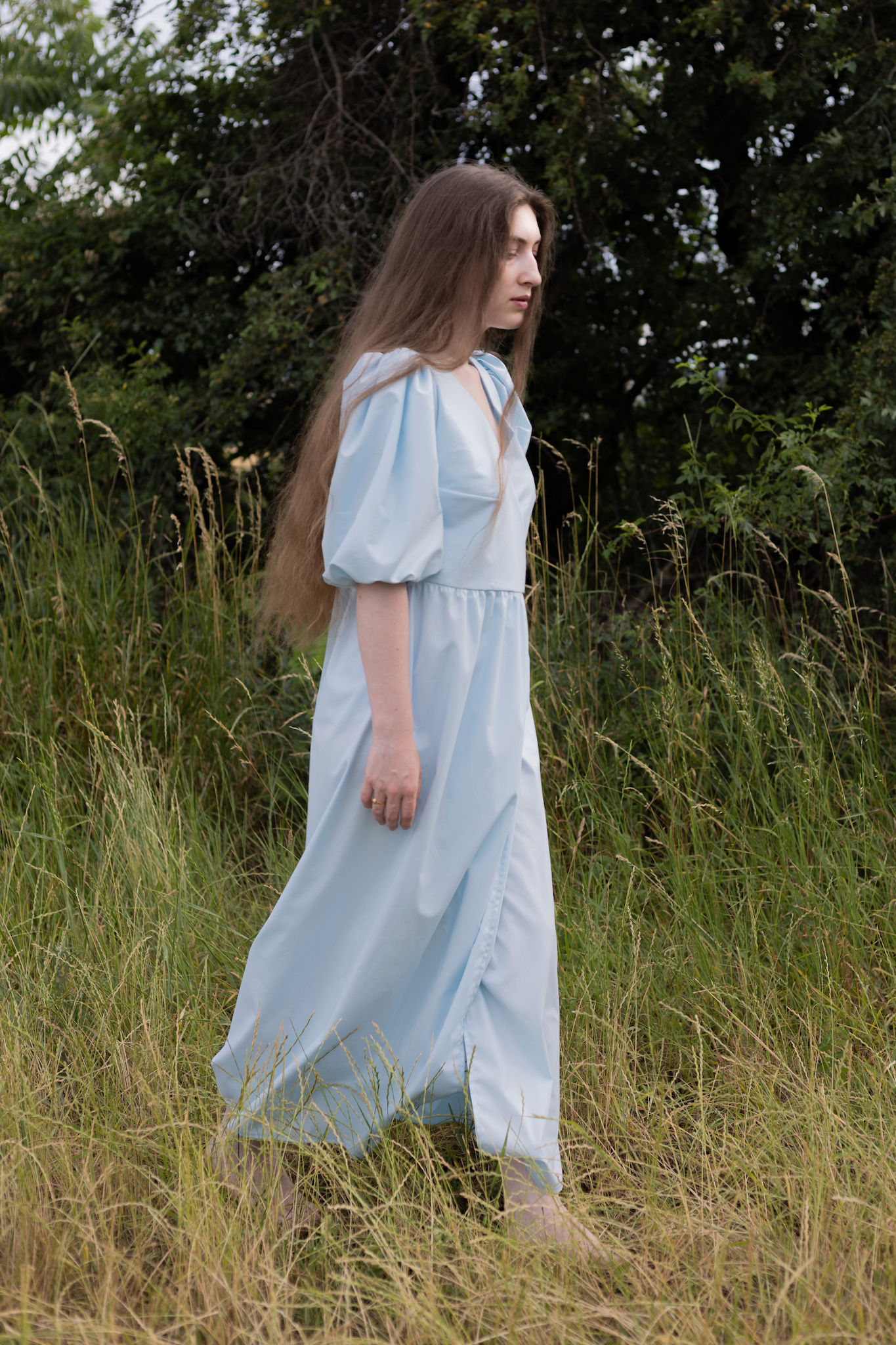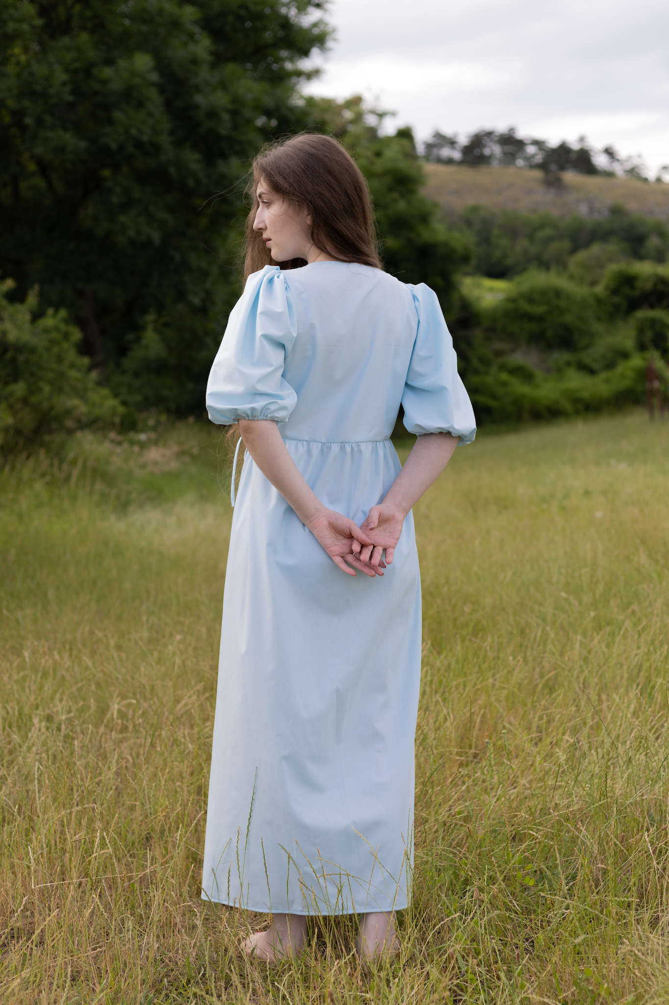 Tyto šaty jsou součástí velmi limitované kolekce – dostupné jsou jen v několika málo kusech. Každý model vznikl s důrazem na detail a s respektem k pomalé módě. Pokud po nich toužíte, neváhejte dlouho – další kusy už nebudou. Ráda Vám je ale ušiju na míru z jiné látky.